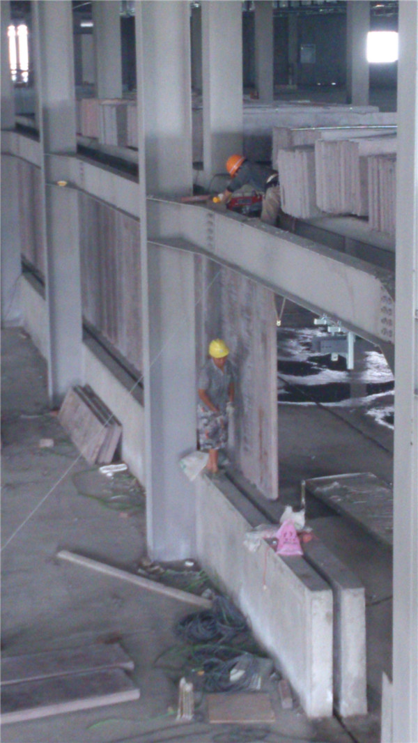 鋼結(jié)構(gòu)廠房裝配式內(nèi)外墻板工程采用的是中凱建材生產(chǎn)的新型輕質(zhì)混凝土墻板,其墻板有著高強度釘掛、黏貼能力能力,并且保溫系數(shù)非常高、防潮防水、抗震、整體性能好、增加使用面積等特點。